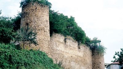 El Palacio de Garaboyuk khanum se alza sobre una colina en el sureste de Shusha con cuatro torres dispuestas en un plano arquitectónico cuadrado.