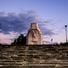 El monumento presenta una estructura central de piedra que se asemeja a una bala vista desde lejos, con relieves socialistas realistas de escenas de batalla.