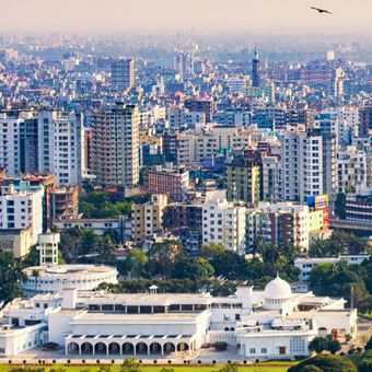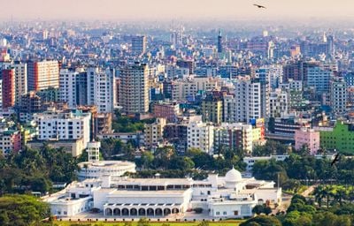 El Bangabhaban ocupa un terreno de 19 hectáreas con altos muros perimetrales, presentando un complejo palaciego de tres pisos rodeado de jardines.