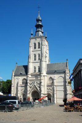 La construcción de la iglesia comenzó en 1358 bajo la dirección del arquitecto Jean d'Oisy, quien diseñó el coro y la capilla sur usando piedra caliza Gobertange.