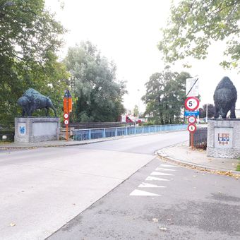 El Canadabrug es un puente que cruza un canal en Brujas con dos prominentes esculturas de bisonte en bronce en ambos lados de su estructura de piedra. El cruce conecta diferentes barrios y se ubica a lo largo de Leopold I-laan.