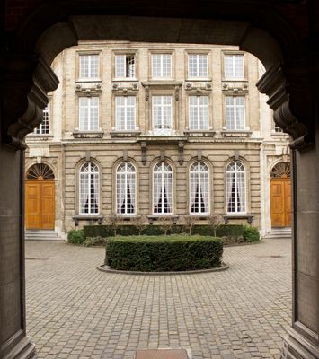 El edificio Heilige Geestcollege presenta elementos arquitectónicos característicos del renacimiento flamenco dentro del campus de la Universidad Católica de Lovaina.