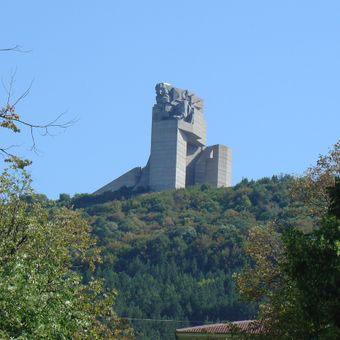 El Monumento a 1300 Años de Bulgaria se ubica en la meseta de Shumen con pilares de hormigón que rodean un patio cerrado. El monumento se alza a unos 18 metros de altura en una elevación de alrededor de 450 metros.