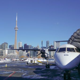 Billy Bishop Toronto City Airport es un aeropuerto regional en las Toronto Islands que opera vuelos comerciales y privados. La terminal se encuentra en una isla y está conectada con el centro de Toronto mediante un túnel peatonal submarino.