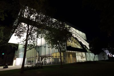 El Pabellón Pierre-Lassonde es un museo de arte cerca de las Llanuras de Abraham en la ciudad de Quebec con paredes de vidrio distribuidas en tres niveles. El edificio conecta espacios de exhibición a través de paredes transparentes, creando líneas visuales entre diferentes salas de arte.