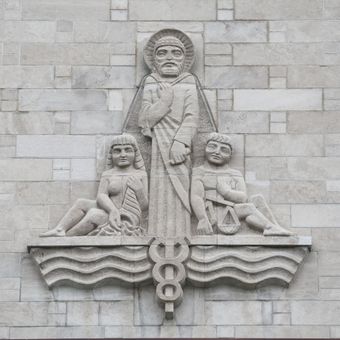 Saint Matthieu, l'offre et la demande, sculpture localisée sur le campus de l'Université Laval
