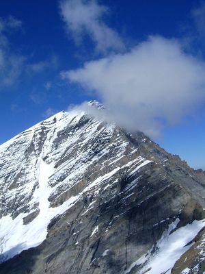 El Balmhorn se eleva hasta los 3.698 metros con laderas escarpadas y establece una frontera natural entre los cantones de Berna y Valais.