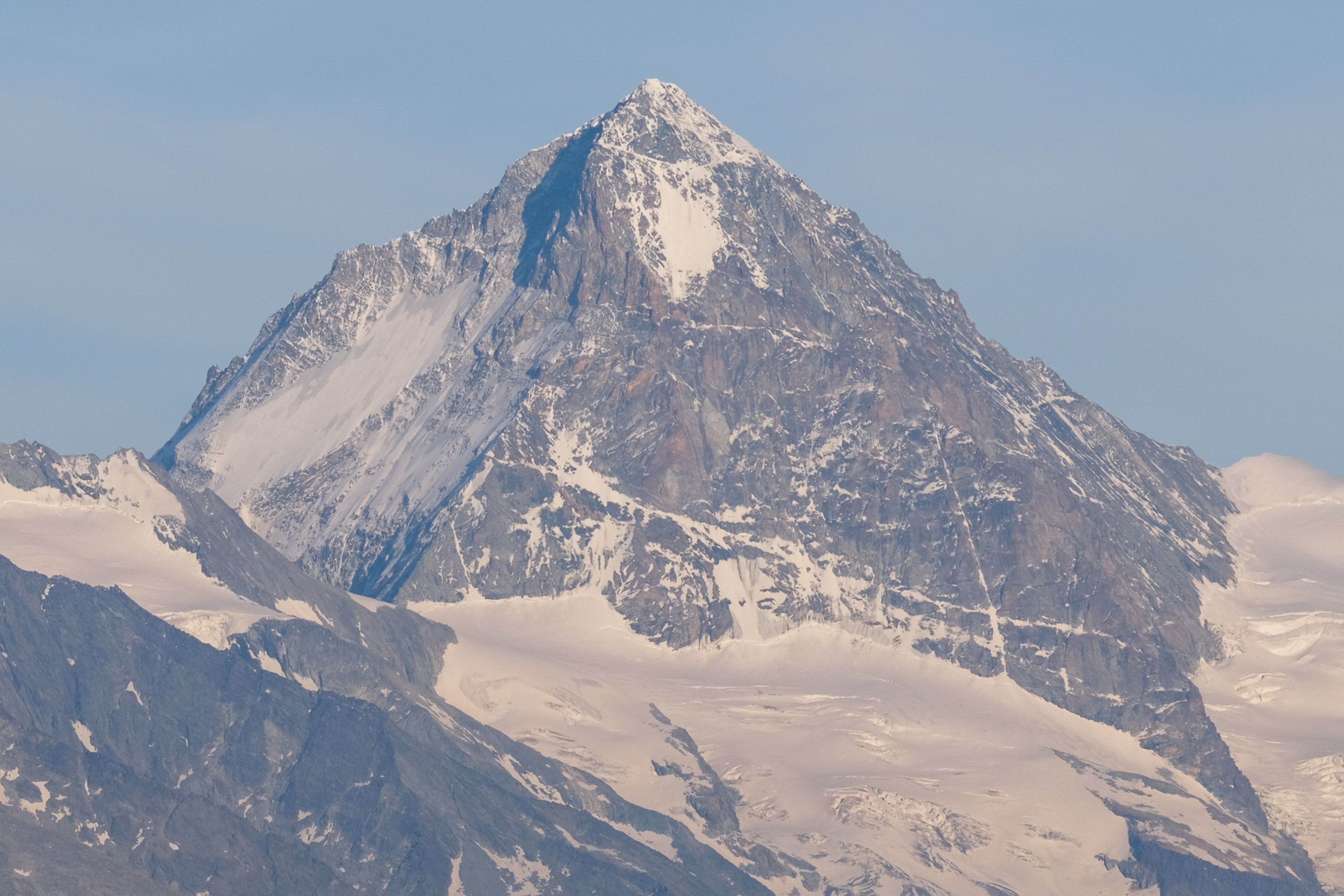 El Dent Blanche alcanza una altura de 4,357 metros y presenta cuatro caras distintas con crestas alineadas hacia los puntos cardinales.