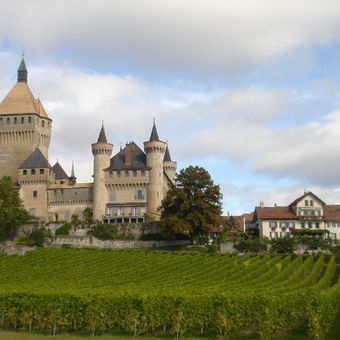 Porte de ville avec tour d'horloge et vestiges du rempart