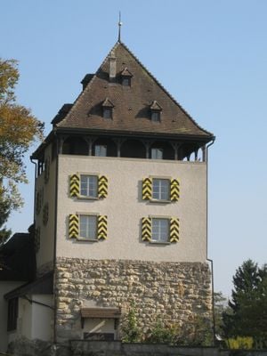 Situado en las coordenadas 47.4154, 8.13977, el castillo alberga una empresa inmobiliaria y contiene una colección de automóviles en su instalación moderna.