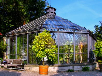 El jardín ocupa cinco hectáreas de terrenos paisajísticos con numerosas especies de plantas, senderos y una estructura central de invernadero del siglo XIX.