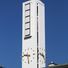 La iglesia Maria Frieden presenta elementos arquitectónicos contemporáneos con líneas rectas y formas geométricas, construida completamente con hormigón visto.