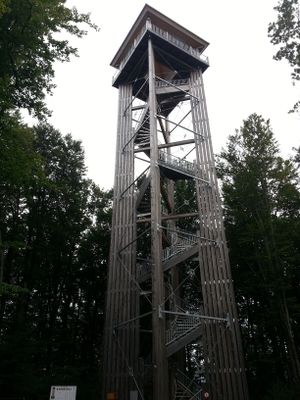 La torre requiere una caminata de 30 a 45 minutos desde los estacionamientos cercanos e incluye el restaurante Waldschenke Altberg para refrigerios.