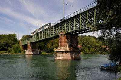 El viaducto ferroviario se extiende 190 metros sobre el río Rin, con un diseño de cerchas que sostiene el transporte ferroviario entre Alemania y Suiza.