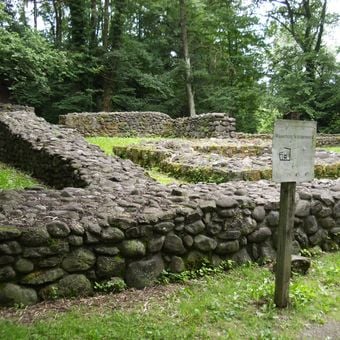 Las ruinas muestran técnicas de construcción medievales mediante muros y cimientos conservados que reflejan los métodos arquitectónicos de constructores suizos.