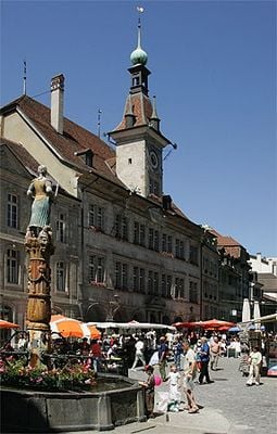 Lausanne Town Hall, Edificio gubernamental en Plaza de la Palud, Lausana, Suiza.