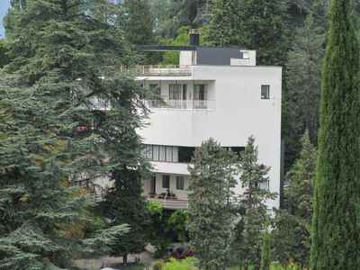 La casa está ubicada en una ladera en La Tour-de-Peilz con vistas directas al lago y se encuentra en una posición elevada. Los visitantes deben saber que el terreno tiene una pendiente considerable y el edificio no es fácilmente visible desde la carretera.