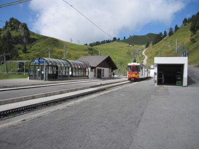 Los trenes realizan trasbordo en la estación de Villars, donde los pasajeros cambian entre la línea de adherencia mixta y la sección de cremallera.