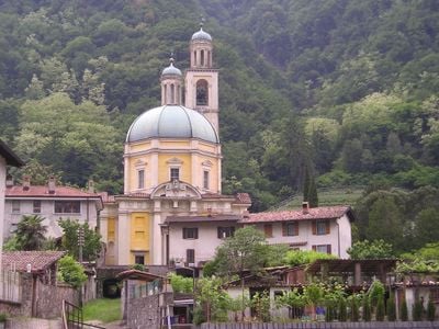 La Iglesia Santa Croce es un lugar de culto en Riva San Vitale que presenta una cúpula octagonal sostenida por ocho columnas monumentales que dominan su espacio interior. El diseño incluye dos capillas laterales y un área presbiteral pronunciada donde se localiza el altar.
