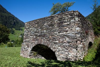Modern iron melting furnace Obermatt, archaeological site in Bristen in the canton of Uri, Switzerland