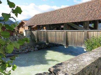 Covered wooden bridge over the Lütschine to Gsteigwiler