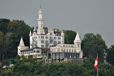 Gütsch Castle es un castillo hotel situado en una colina sobre Luzerna, construido con piedra clara, torres blancas y techos pronunciados con formas neogóticas. La estructura está a unos 540 metros de altitud y ofrece a los huéspedes habitaciones, comedores y terrazas con vistas a la ciudad y el lago.