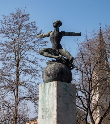 Bider memorial, stele with bronze sculpture in memory of the aviation pioneer Oskar Bider on the Kleinen Schanze in the city of Bern, Switzerland