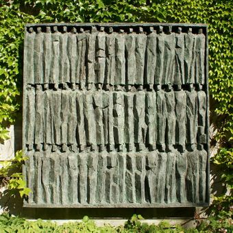 Società, bronze sculpture in the crypt courtyard of the Trinity Church in the city of Bern, Switzerland