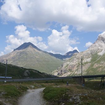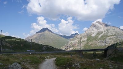 Obere Berninabachbrücke, the upper of two bridges carrying the Bernina railway over the Ova da Bernina river between Bernina Legalb and Ospizio Bernina stations in Switzerland