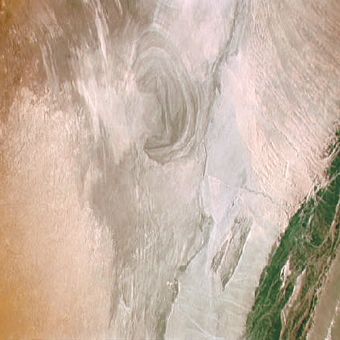 Las imágenes satelitales muestran patrones en el terreno que se asemejan a una gran forma de oreja cuando se ven desde arriba. Estas formaciones se desarrollaron a través de procesos de erosión natural durante largos períodos.