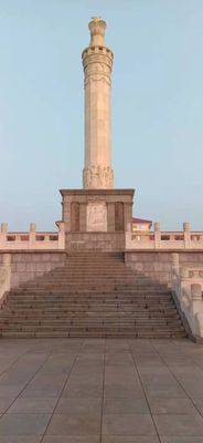 El monumento incorpora inscripciones de Zhou Enlai y representa símbolos importantes como la Plaza Tiananmen, el Kremlin y las Acerías de Anshan.