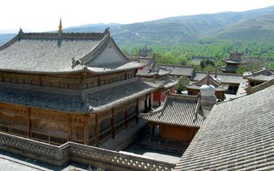 Este monasterio se encuentra a 88 kilómetros de Xining y ocupa 15.000 metros cuadrados con múltiples salas y pasillos de arquitectura palaciega china.