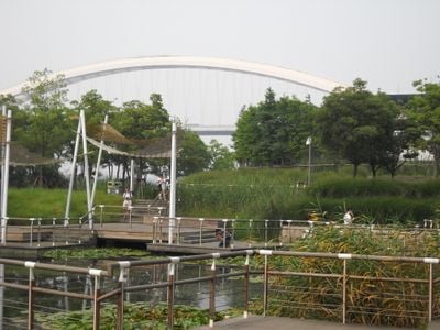 El parque surgió de la transformación del recinto de la Exposición Mundial 2010, conservando pabellones de Rusia, Italia, Francia y Luxemburgo.