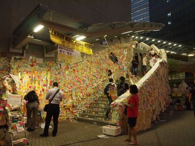El muro surgió durante el Movimiento Paraguas de 2014 cuando los ciudadanos comenzaron a expresar sus opiniones políticas mediante mensajes escritos y contribuciones artísticas.