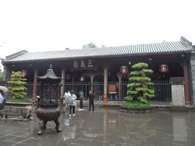 El Templo Sanyi se encuentra en el centro de Chengdu, con arquitectura china tradicional que incluye tallas en madera y decoraciones en piedra.