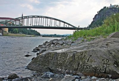 Hunger stone in Děčín, Marcador hidrológico en el río Elba en Děčín, República Checa.
