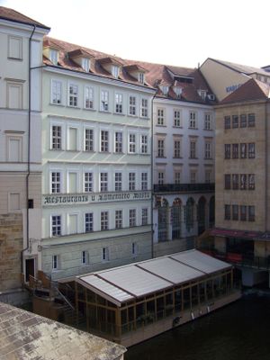 Pamětní deska na severní zdi Staroměstské mostecké brány v Praze