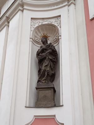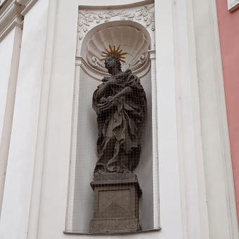 Statue of Saint John of Nepomuk at Saint Ursula Church in Prague