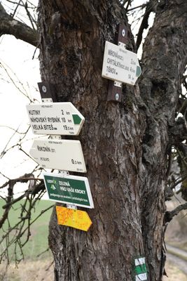 Rozcestník Řikonín - žst., odb., turistický rozcestník v okrese Brno-venkov