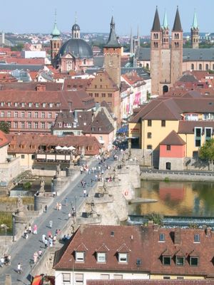 Situada junto al río Main a 177 metros de altura, Würzburg se extiende por 87 kilómetros cuadrados con varios puentes que conectan sus distritos.