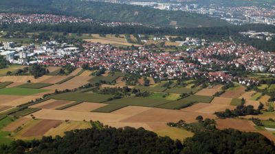 La ciudad de Ostfildern se extiende por 22.81 kilómetros cuadrados en la meseta de Filder, incluyendo seis distritos residenciales cerca de Stuttgart.