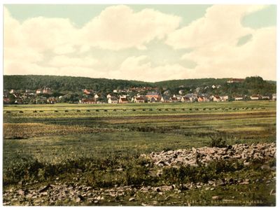 La ciudad se extiende por el borde norte de la cordillera del Harz, abarcando cinco pueblos distintos en 86 kilómetros cuadrados.