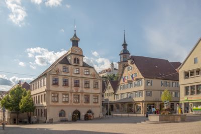 El asentamiento, mencionado por primera vez en documentos de 1252, recibió su carta puebla del Conde Gottfried von Vaihingen y se desarrolló como centro regional en 1938.