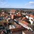 La plaza central de Kamenz presenta un ayuntamiento rojo, múltiples torres de iglesias y tiendas tradicionales alrededor de un espacio rectangular.