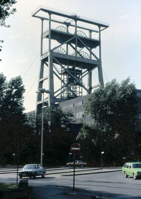 El complejo minero Gneisenau incluye dos estructuras notables de acero: un castillete Tomson y un andamiaje de dos pisos construido en 1933.