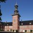 Schloss vor Husum es un castillo renacentista en la región de Frisia del Norte en Schleswig-Holstein que funciona como centro cultural. El edificio tiene una torre central, un foso de agua y terrenos extensos con árboles y espacios abiertos.