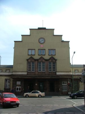 La estación ferroviaria, inaugurada en 1873, experimentó modificaciones importantes entre 1912 y 1926 cuando las vías se elevaron sobre un terraplén.