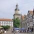 La plaza del mercado presenta una colección de casas mercantiles conservadas de diferentes siglos, mostrando la evolución arquitectónica alemana.