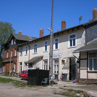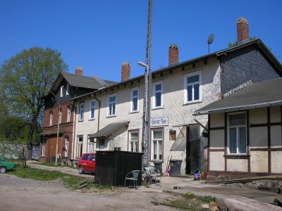 El castillo de Gehren, transformado en pabellón de caza por los condes de Schwarzburg en 1464, se incendió en 1936, dejando solo restos de sus muros exteriores.