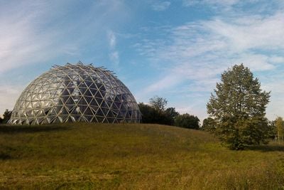 El invernadero geodésico de 18 metros alberga 400 especies de las regiones mediterráneas y las Islas Canarias en condiciones climáticas controladas.